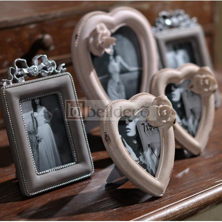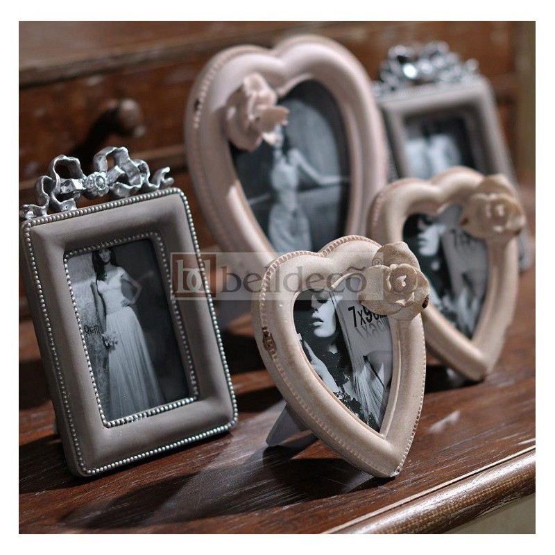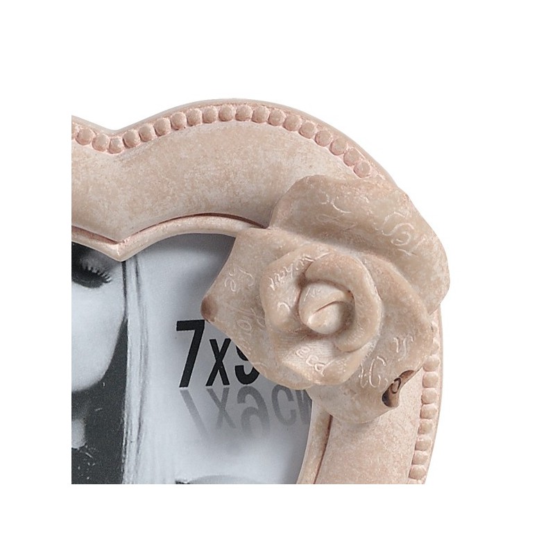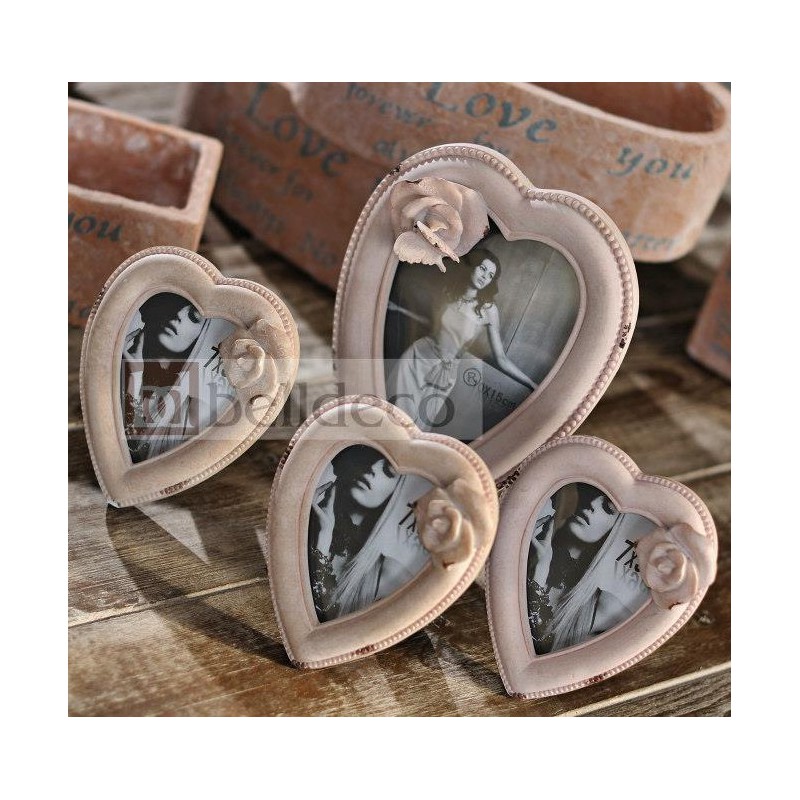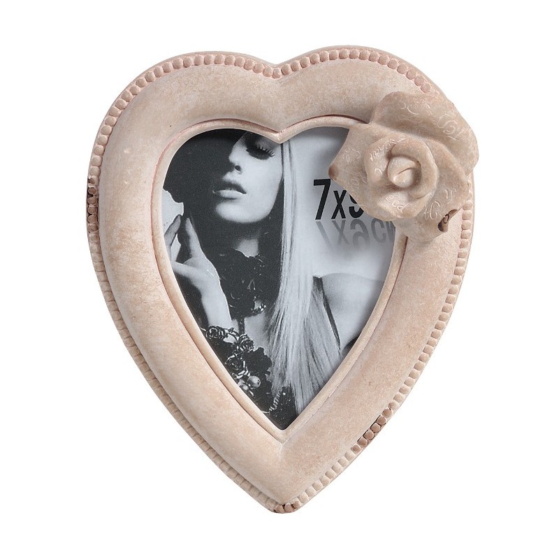 Ramka Serce to pełna uroku ramka Belldeco w kształcie serca z małą różyczką. Na różowej powierzchni ramki znajdują się przetarcia w rdzawym kolorze.
