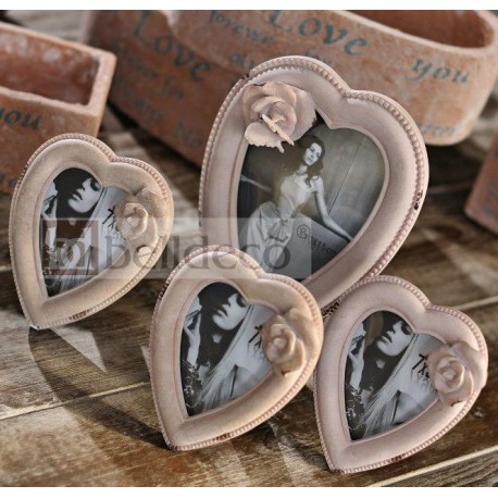 Piękna ramka w stylu shabby chic w kształcie serca z rdzawymi przetarciami.