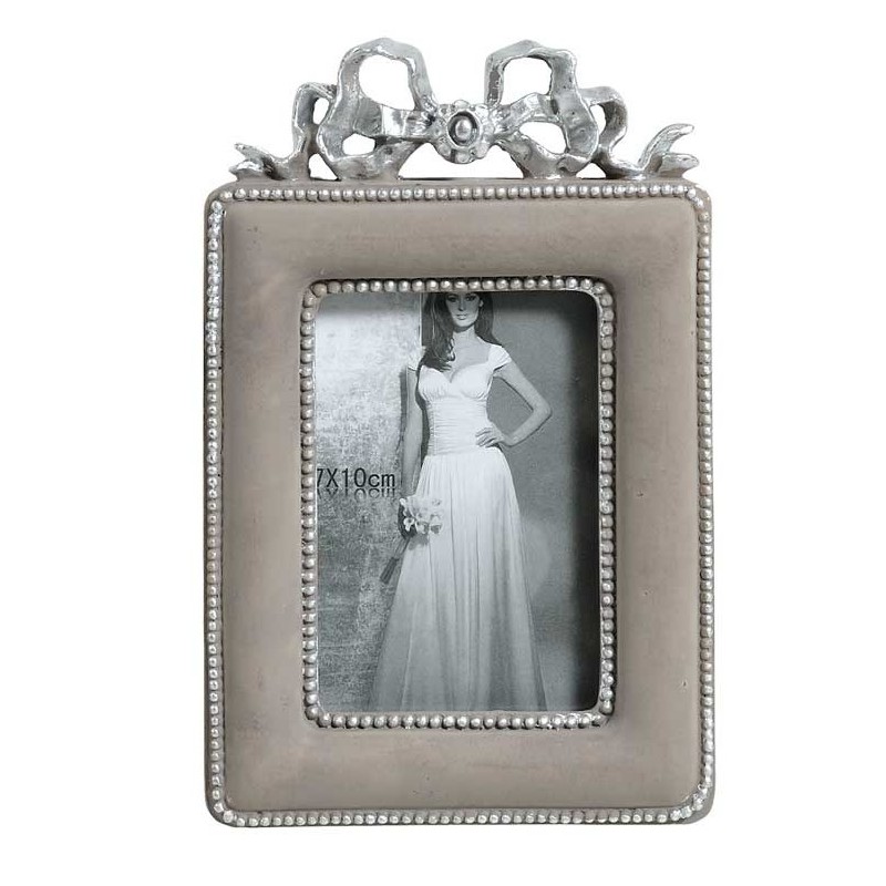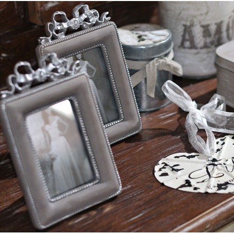 Kwadratowa ramka Belldeco z ozdobnikiem w kształcie kokardki. Ramka wykonana jest z tworzywa, którego faktura imituje zamsz i jest bardzo miła w dotyku.