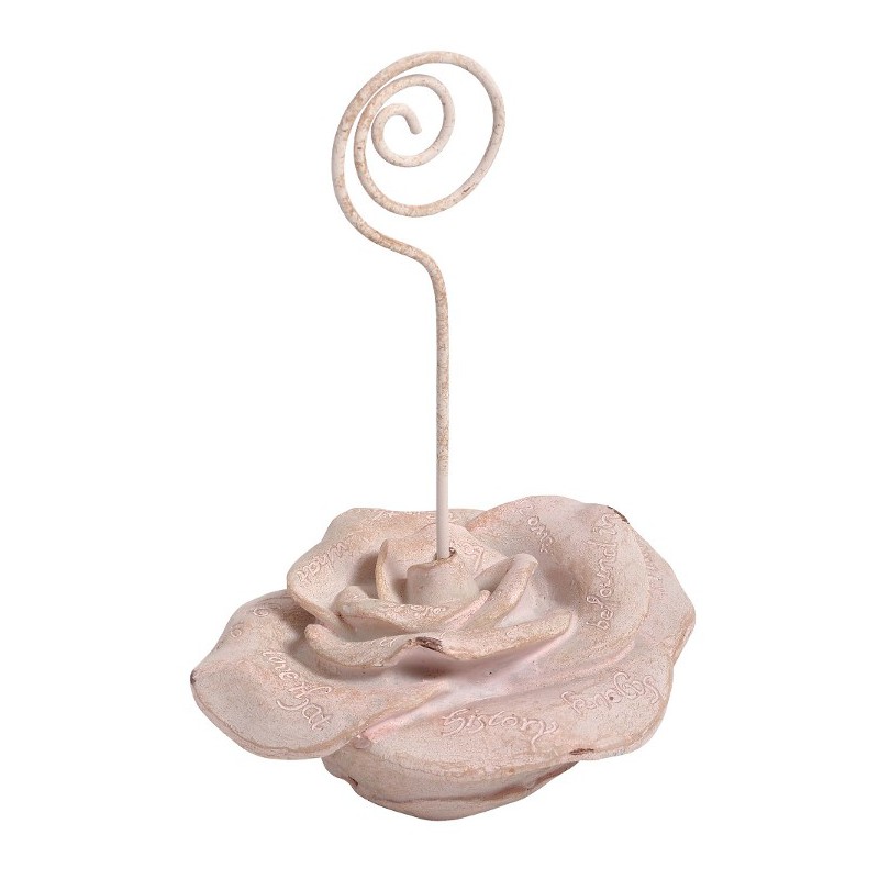 Uroczy stojak na zdjęcie Belldeco w stylu shabby chic, przecierany i mający kształt róży.