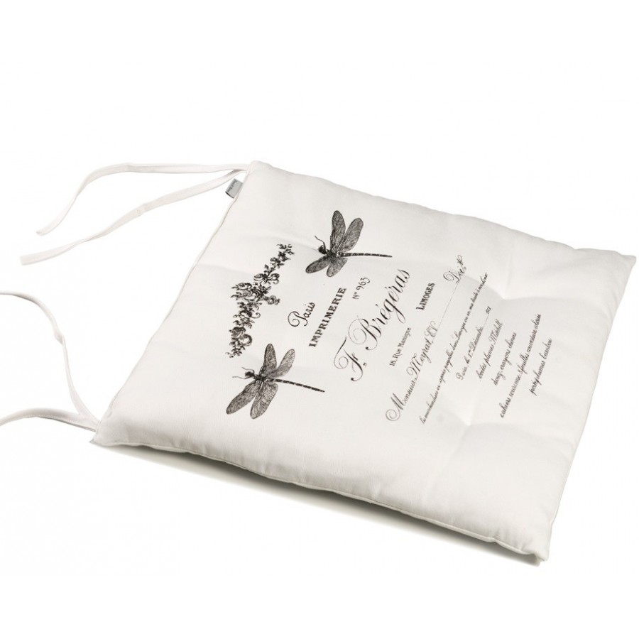 Pikowane poduszki na krzesła w stylu francuskim to bawełniane poduszki z napisami oraz motywem ważek polskiej marki French Home. Poduszki wykonane sa ze stuprocentowej bawełny i posiadają sznureczki, dzięki którym poduszki można przywiązać do oparcia krzesła. Poduszki można prać w pralce wraz z wkładem.