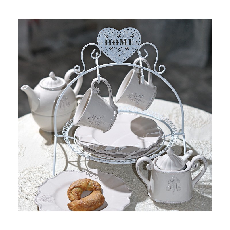 Koszyk Belldeco to śliczny, metalowy stojak na kubki i talerzyki z serii Romntic Belldeco. Stojak ma biały kolor, a w jego górnej części znajduje się ozdobne, metalowe serduszko.
