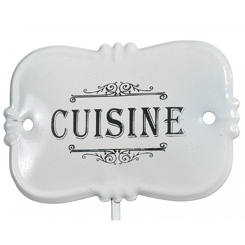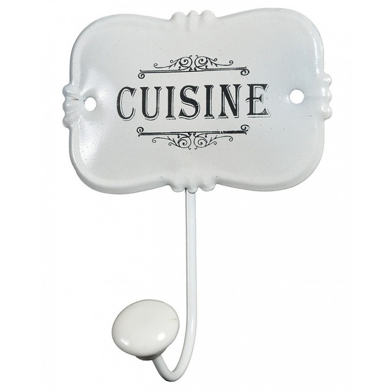 Wieszak retro marki Belldeco z czarnym, francuskim napisem CUISINE na białym tle.