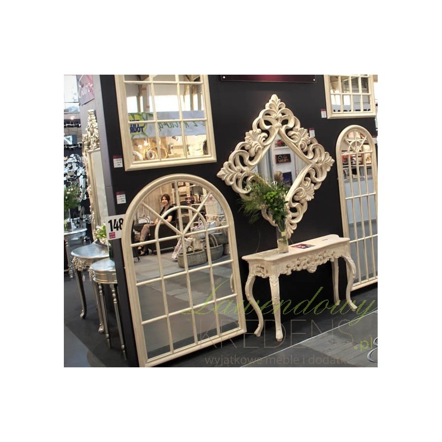 Fantastyczne, imitujące wrażenie dużego, rozjaśniającego przestrzeń okna, lustro prowansalskie z specjalnie wykonanej ramie. Powierzchnia drewnianej ramy całkowicie komponuje się z całością przedmiotu, a dzięki specjalnemu zabiegowi sprawia wrażenie dosyć starej i stylowej. Lustro zyskuje dzięki temu prowansalski klimat i czar!
