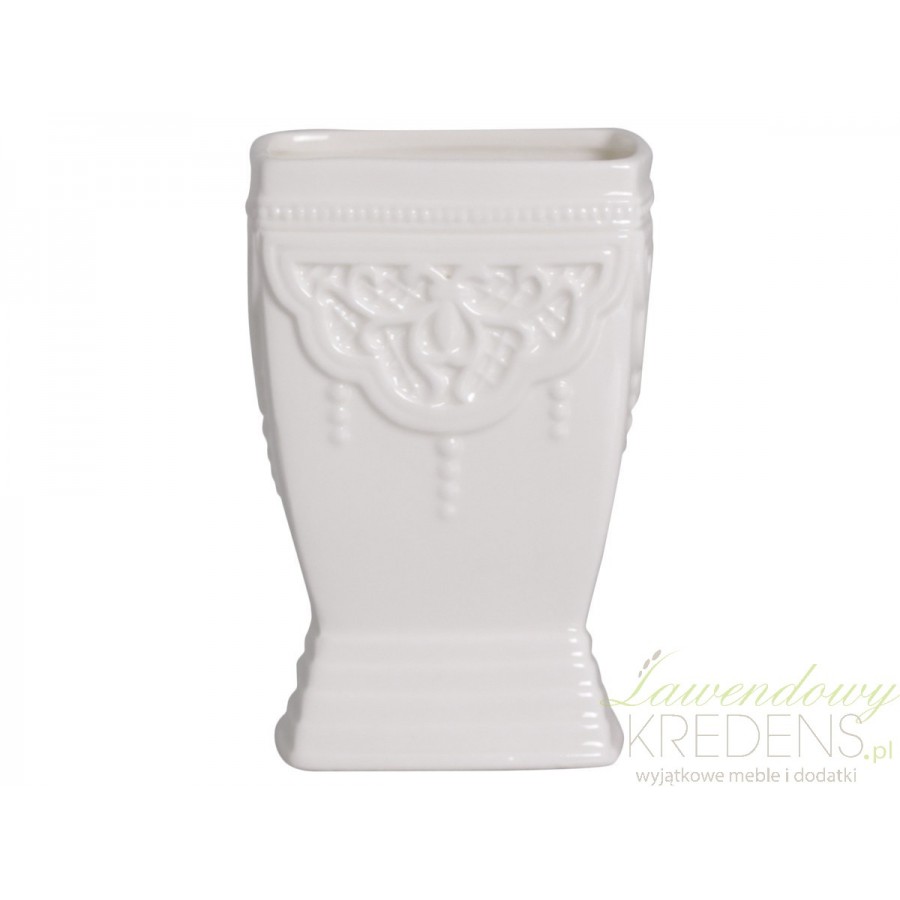 Dodatki do łazienki to niewielkie rzeczy, które w znaczący sposób mogą odmienić każde wnętrze. Kubek ceramiczny firmy Chic Antique ma biały kolor i niecodzienny, oryginalny kształt. Wyróżniają go śliczne, delikatne rzeźbienia, stanowiąc jego wyjątkowa dekorację. Polecamy!