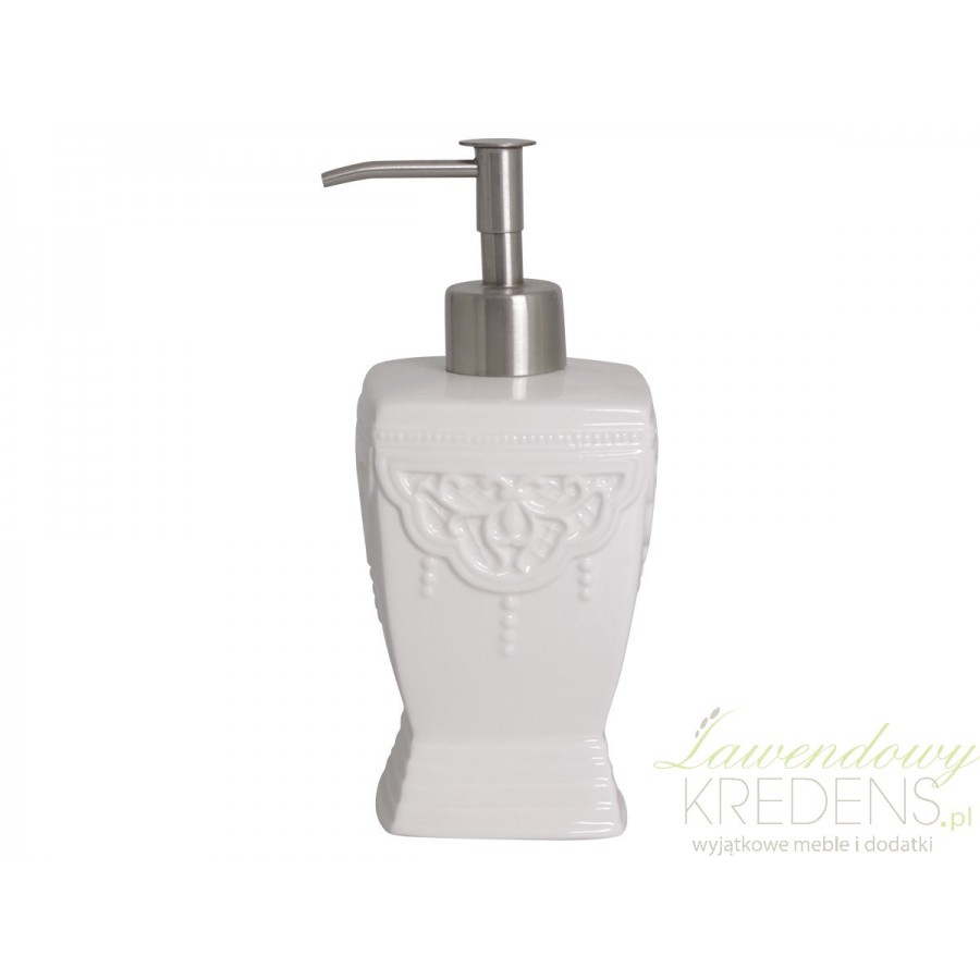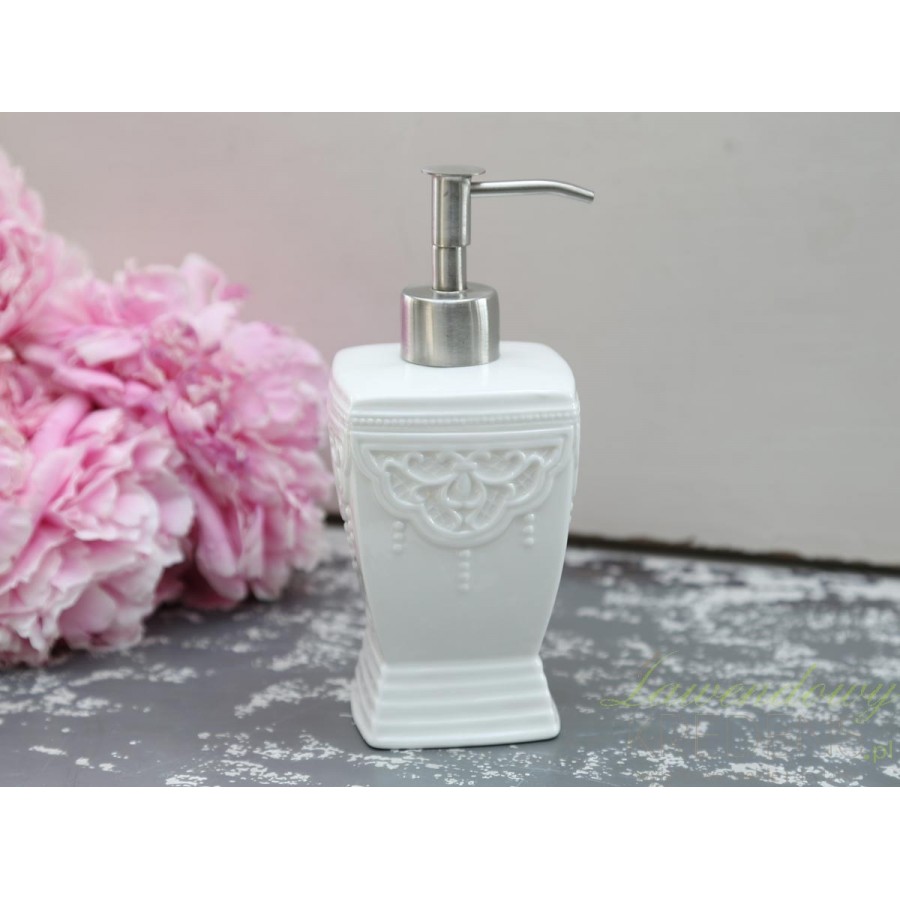Biały dozownik do mydła marki Chic Antique rewelacyjnie podkreśli prowansalski charakter Twojej łazienki. Ceramiczna forma, która stanowi piękne tło dla praktycznej strony dozownika ozdobiona została wypukłymi wzorami, które nadają całości jeszcze bardziej elegancki charakter.
