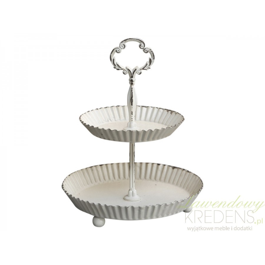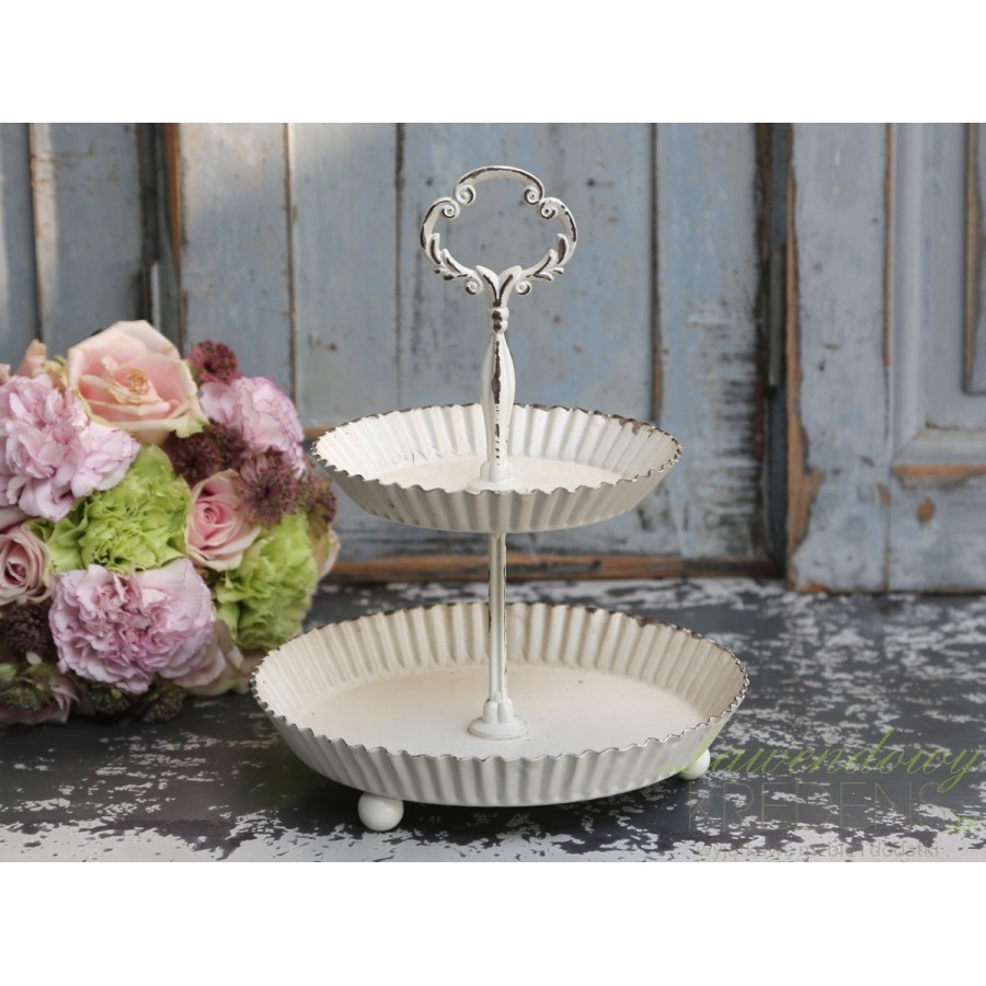 Dwupiętrowa etażerka w stylu prowansalskim to metalowy dodatek stołu, który pięknie wyeksponuje Twoje wypieki!
