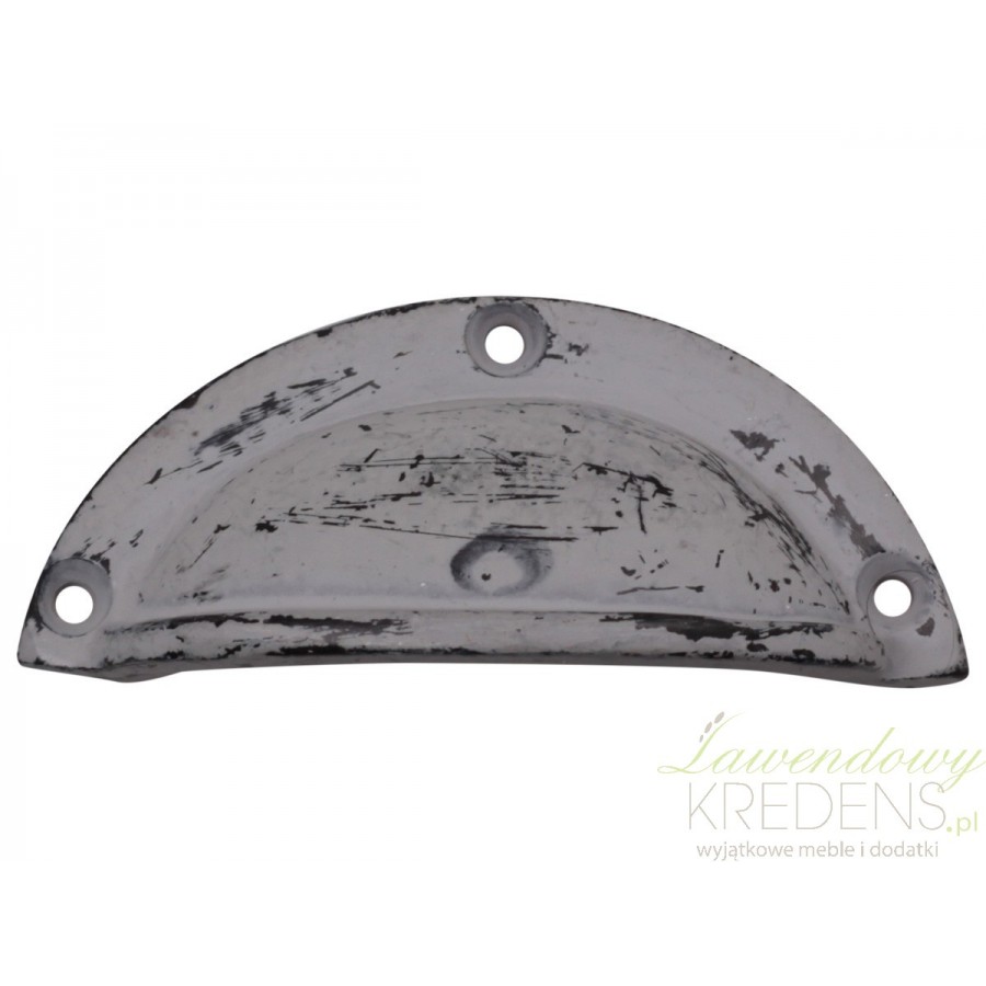 Gałki do mebli vintage wykonane są z szarego postarzanego i przetartego metalu. Gałki meblowe firmy Chic Antique mają kształt połowy koła, co będzie doskonale pasować do loftowych mebli. Metalowe gałki do mebi to wyjątkowe dodatki, które z pewnością zwrócą uwagę wszystkich gości.
