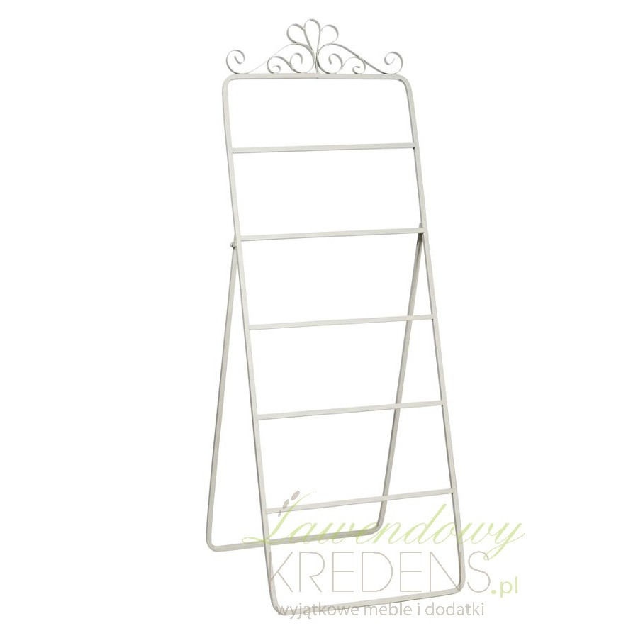 Metalowy, rozkładany wieszak na ręczniki z ozdobnym wykończeniem górnej krawędzi. Biała elegancja!