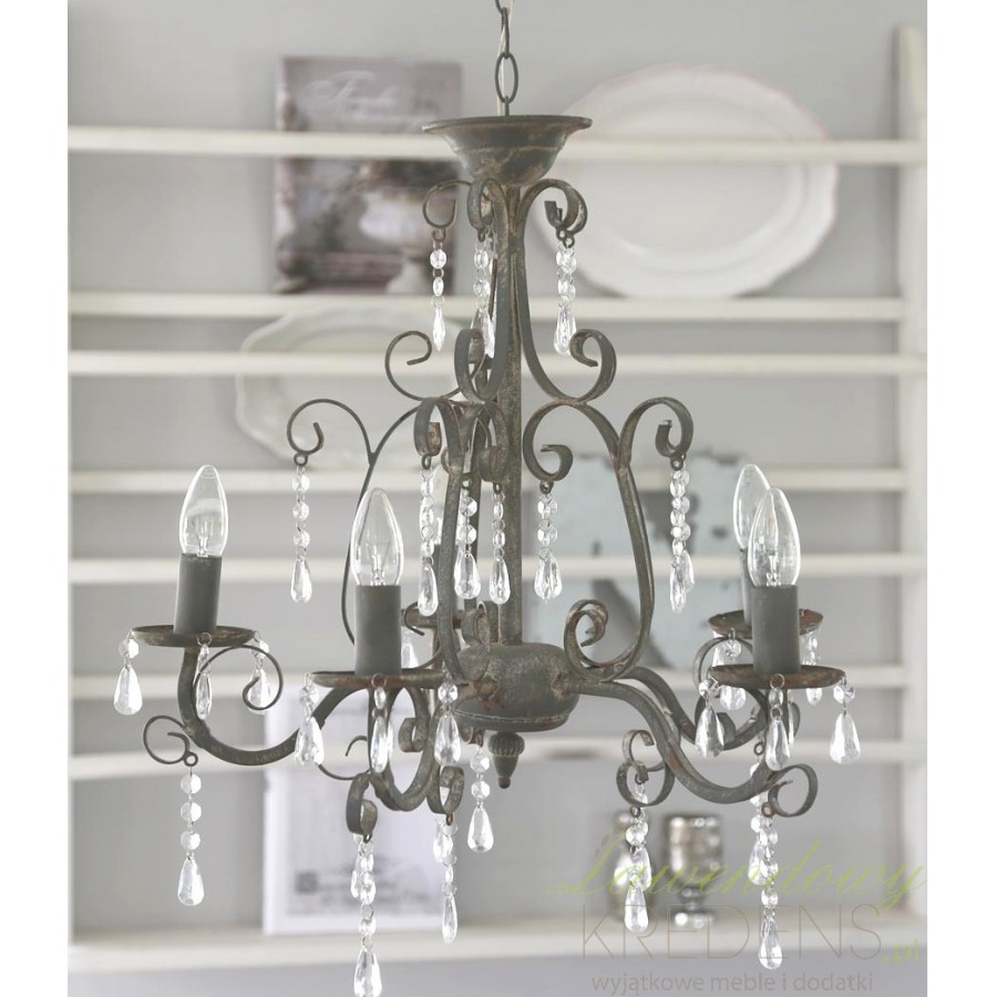 Niezwykle gustowny żyrandol metalowy z błyszczącymi kryształkami, czyli lampa prowansalska w pełnej okazałości!