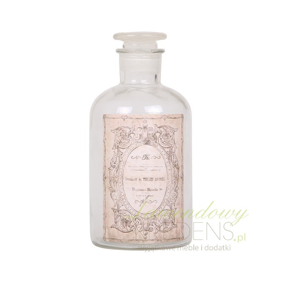 Szklana butelka ozdobna, której głównym atutem są prowansalskie dekoracje w postaci nadrukowanych etykietek!