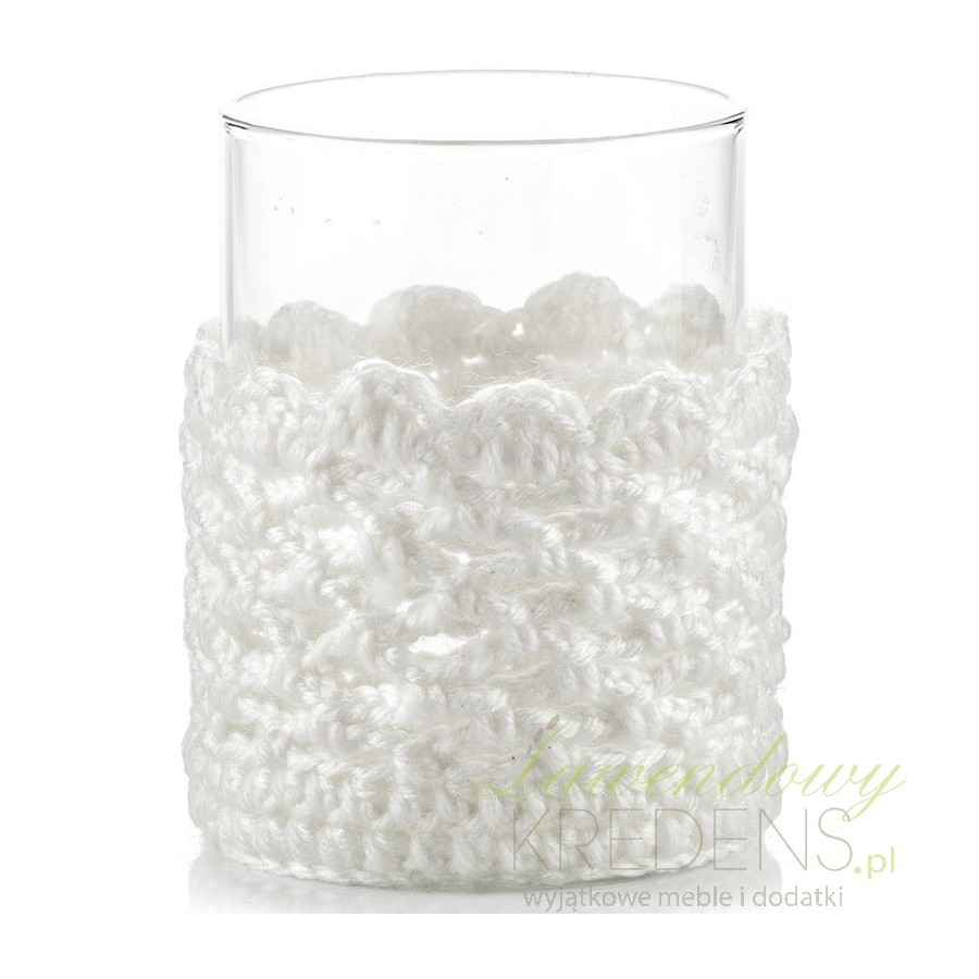 Szklany świecznik z koronką stanowi atrakcyjną dekorację dzięki zastosowaniu nietypowej w świecie świeczników ozdoby, którą jest biała koronka. Plecionka koronkowa, w którą ujęte jest szklane naczynie doskonale pasuje do przestrzeni retro, vintage i prowansalskich. Oryginalne dodatki z koronką to mnóstwo romantycznej aury dla Twojej aranżacji.