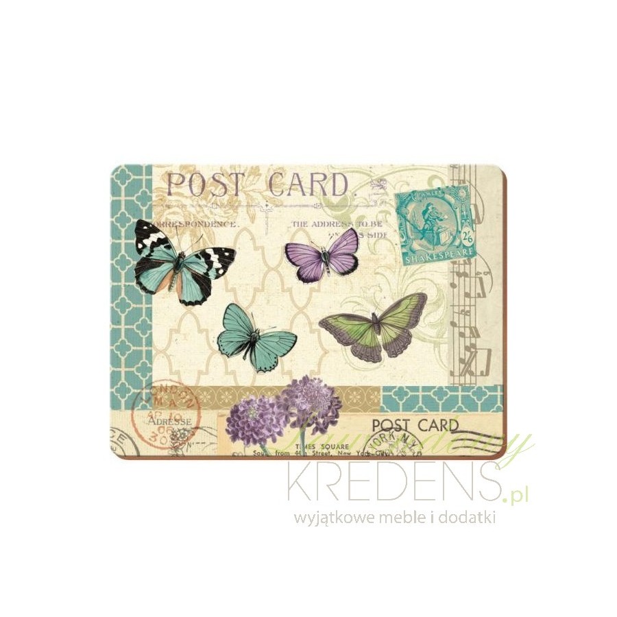 Dodatki do kuchni, a wśród nich podkładki korkowe mają prostokątny kształt i cztery urocze kolorowe motyle. Podkładki stołowe sa w stonowanych miłych dla oka kolorach zieleni i fioletu. Doskonale będą wyglądać na stole w jadalni, chroniąc go przed zarysowaniem czy zabrudzeniem. Wyglądem przypominają gustowną pocztówkę.