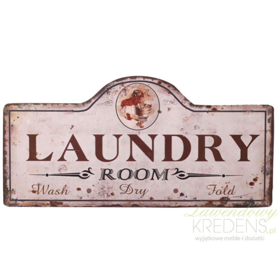 Obrazki retro mają nierówny, interesujący kształt i sprawiają wrażenie starych i zniszczonych. Obrazki metalowe firmy Chic Antique mają duży angielski napis Laundry i obrazek piorącej dziewczynki. Metalowe obrazki to nowoczesna i modna forma wyrażania uczuć i ekspresji.