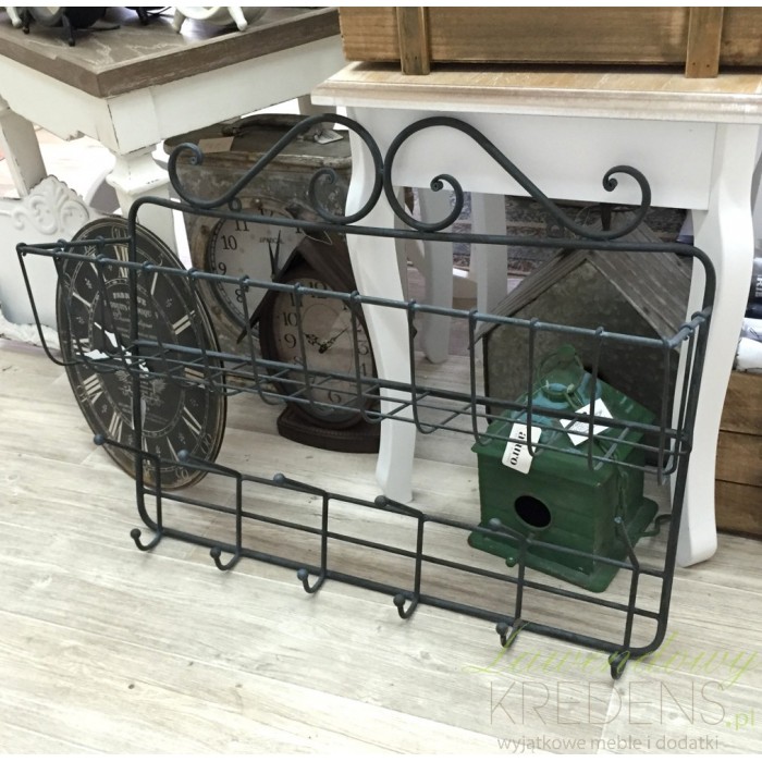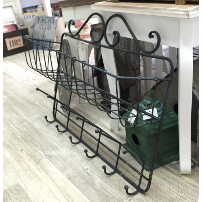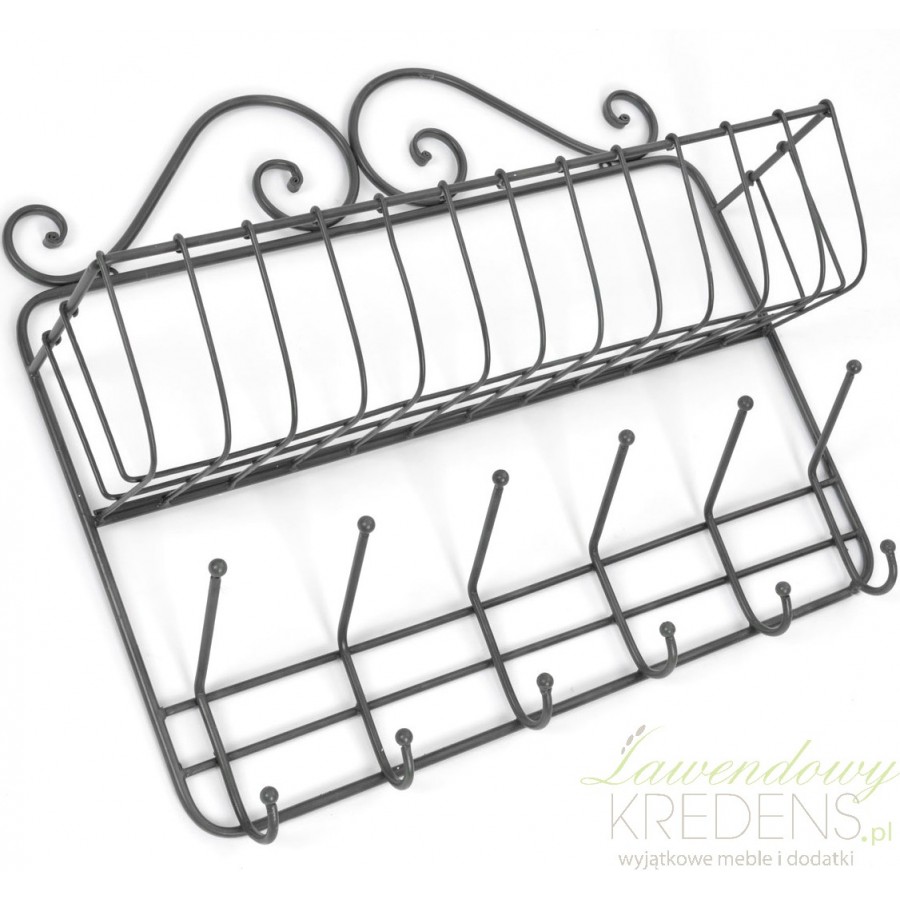 Wieszaki ścienne zamocowane na metalowej obudowie z koszyczkiem to łazienkowe dodatki w stylu prowansalskim. Dzięki ich prostej budowie ozdobionej jedynie klasycznym motywem z prętów spełnią wymagania każdego wnętrza, dając dodatkowe dwanaście wieszaczków na ręczniki czy ściereczki. KOszyczek w górnej części doskonale nadaje się na kosmetyki!