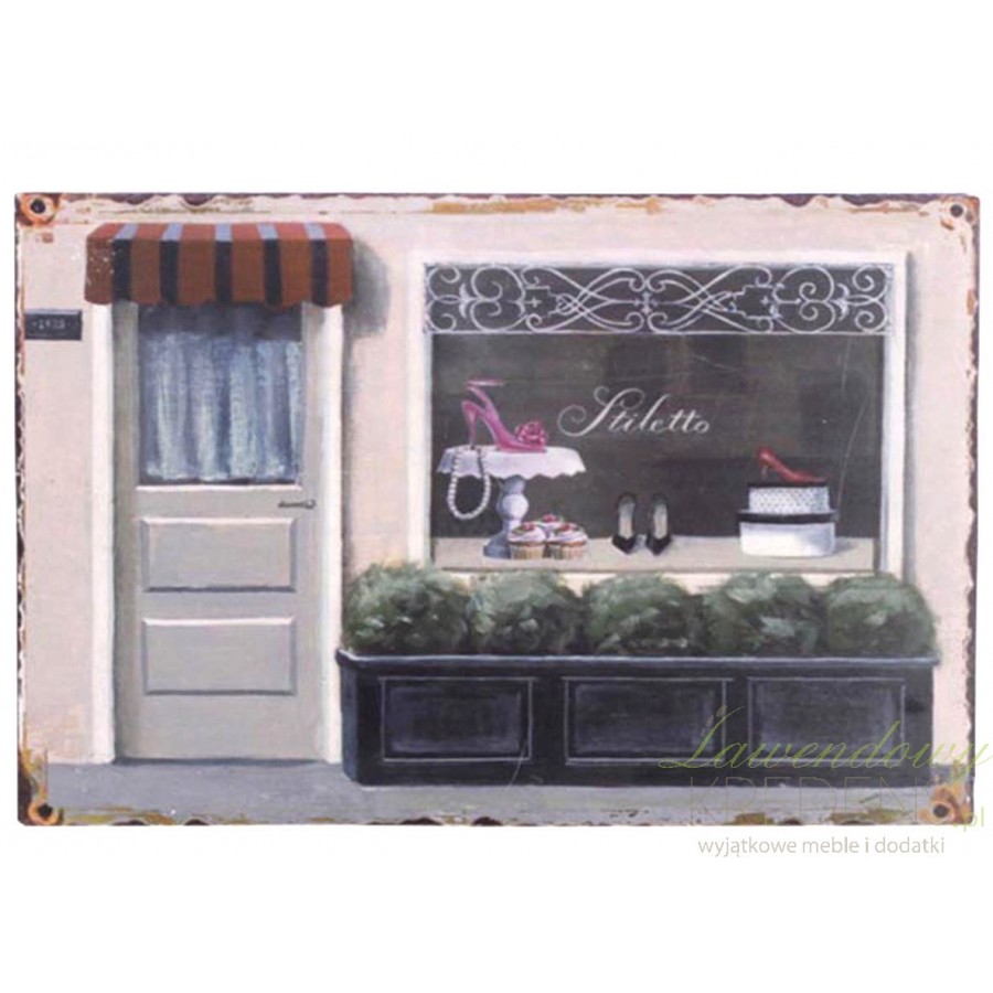 Obrazki metalowe to niezwykle modne i nowoczesne rozwiązanie w wystroju wnętrz. Metalowe obrazki rozbudzą twoją wyobraźnię i nadadzą niesamowity klimat. Obrazki w styl prowansalskim są postarzane i przedstawiają witrynę sklepową. To świetny pomysł na prezent.