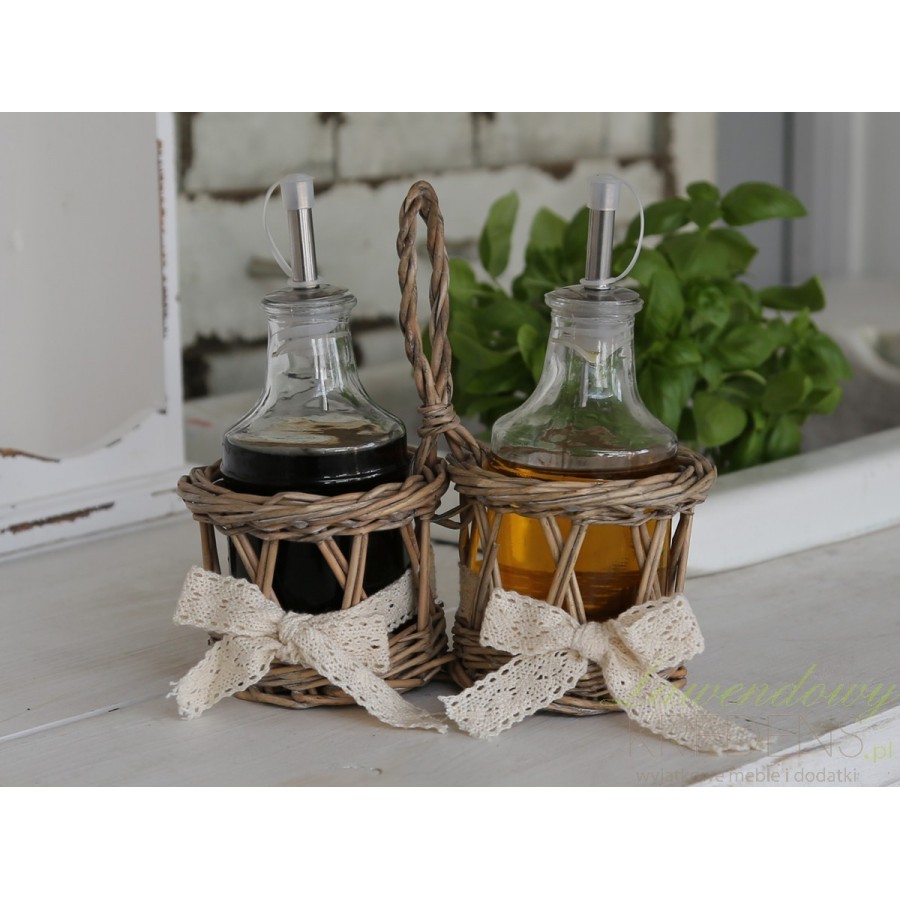 Unikalny komplet w stylu prowansalskim, czyli butelki na oliwę i ocet w specjalnych koszyczkach! Niezwykle dekoracyjne!