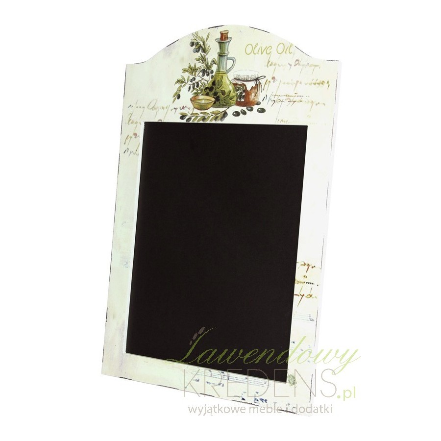 Świetnie nadające się do kuchni dodatki w stylu prowansalskim to także tablica do pisania kredą, na której zapisać możecie dzienny plan dnia, ważne wiadomości czy przypomnienia. Ze względu na rozmiar i ciekawą ramę w oliwkowe wzory nikt nie przejdzie względem nij i wypisanych na niej słów obojętnie! Sprawdźcie sami!