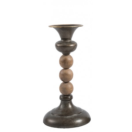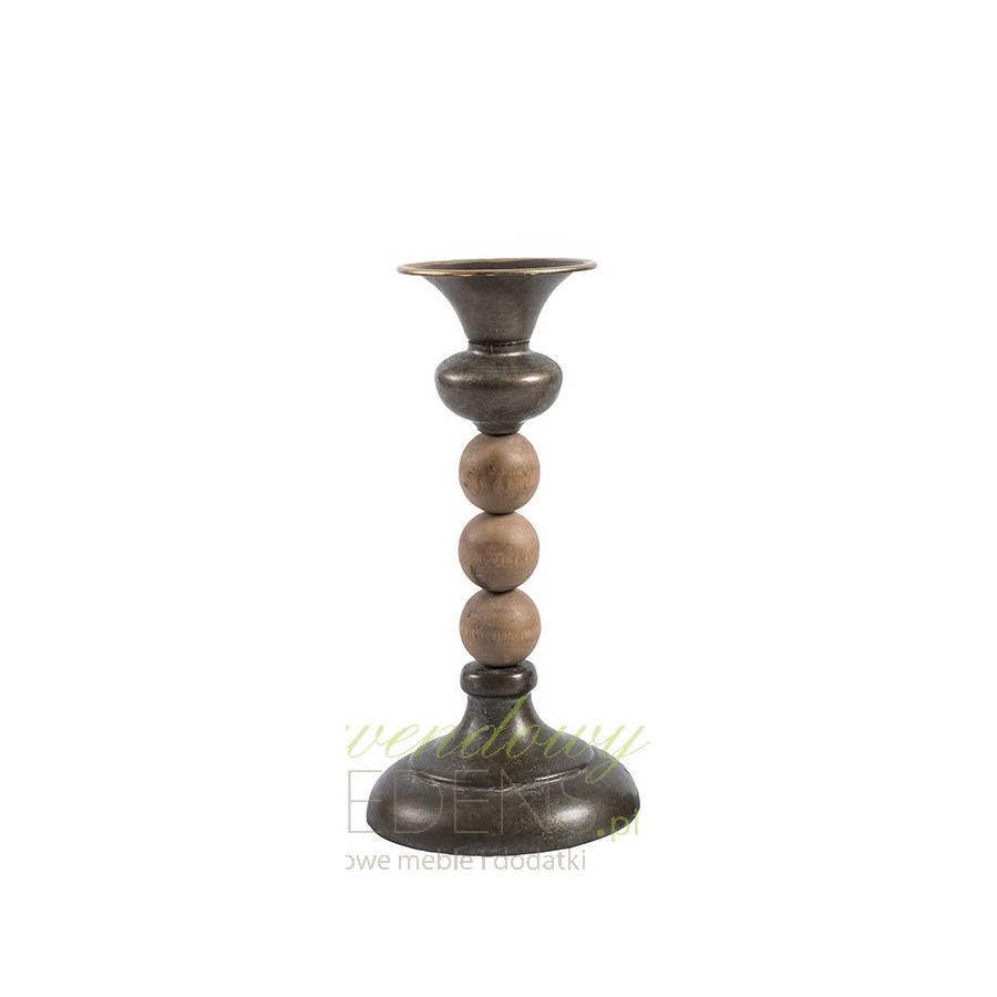 Świeczniki Belldeco to bogactwo wzorów i wspaniałe różnorodne kształty wyróżniające się na tle innych dodatków do wnętrz. Świecznik Belldeco wykonany jest z metalu i drewna jodłowego w postaci znajdujących się na środku dużych kulek. Stoi na stabilnej, rozłożystej nodze i nie jest zbyt dużych rozmiarów, ale za to wszędzie pięknie wygląda.