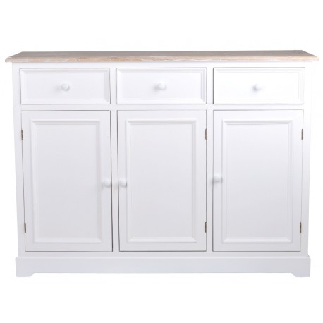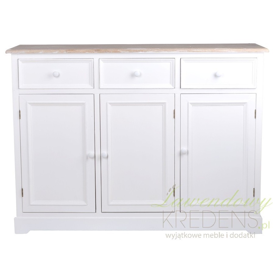 Trzydrzwiowa komoda prowansalska z półkami i szufladami, z przepięknie bielonym blatem z naturalnego drewna!