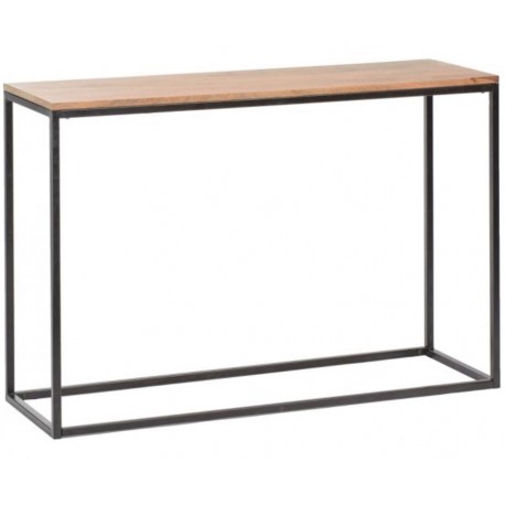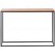 Stabilna, wykonana w prostej formie konsola w stylu skandynawskim z bardzo naturalnym drewnianym blatem opartym na metalowej, czarnej podstawie. Praktyczne wykorzystanie konsoli nie musi ograniczyć się do roli toaletki czy półki, aranżując swoją przestrzeń możesz znaleźć dla niej nową funkcję.
