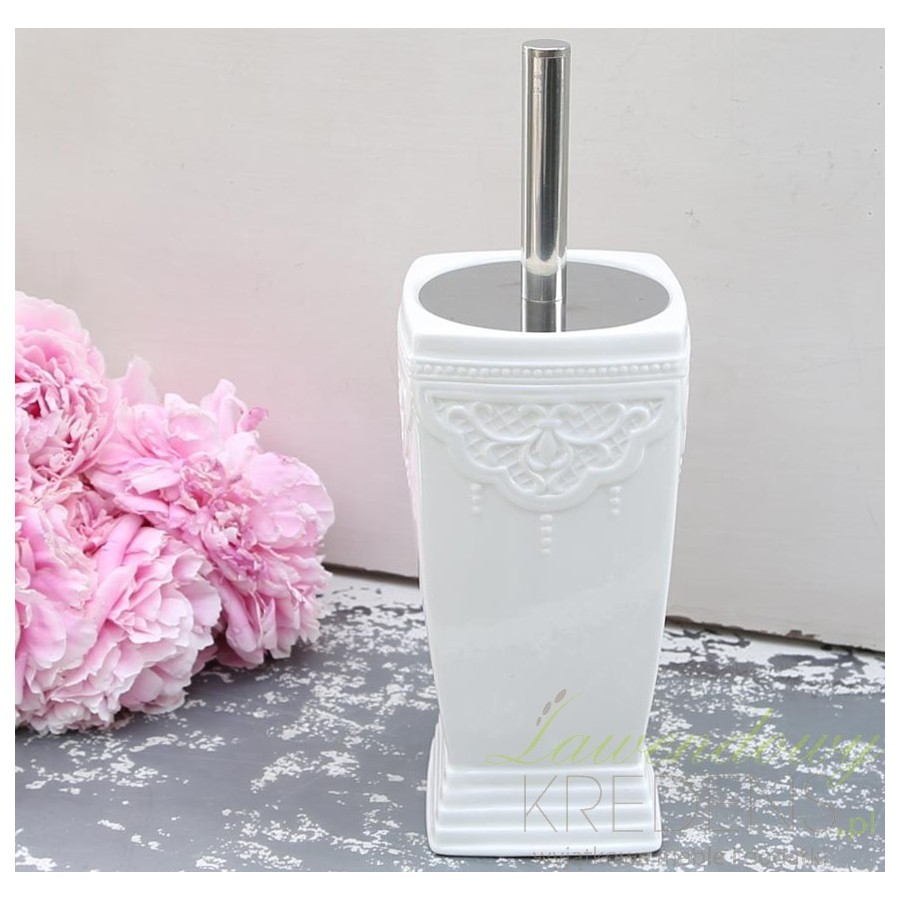 Potrzebna w każdej łazience szczotka do toalety zamknięta w przepięknej, białej formie z delikatnymi zdobieniami!