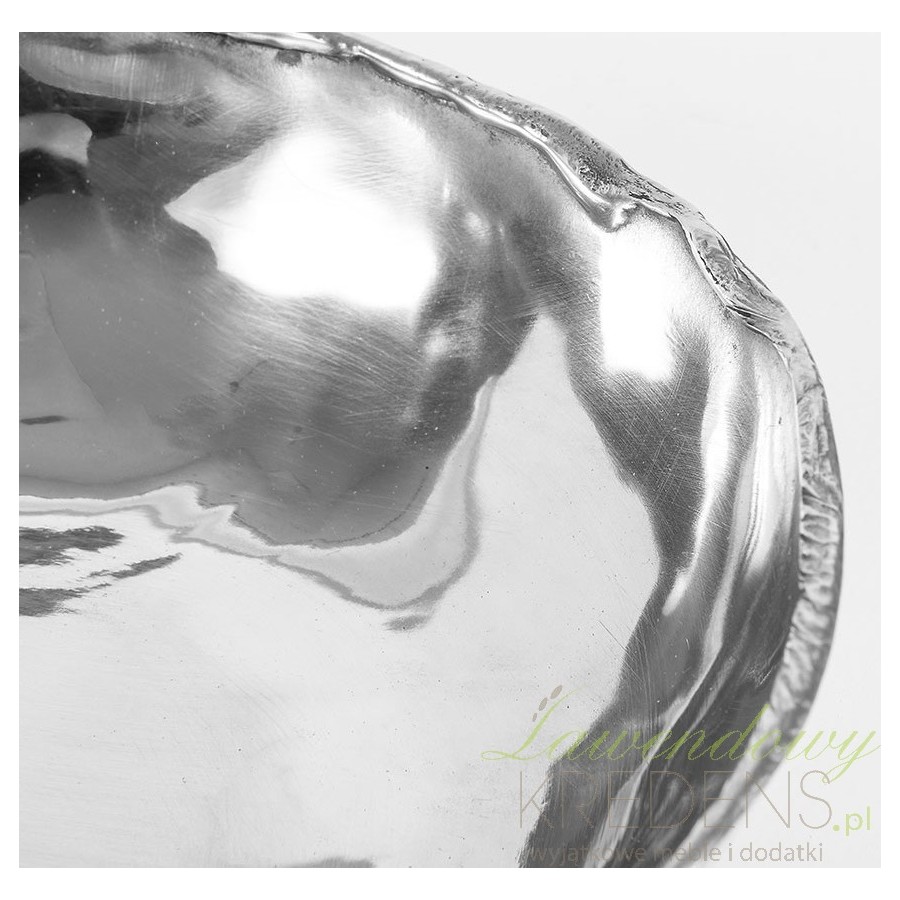 Srebrna misa firmy Belldeco o nieregularnej, stopionej krawędzi, wyjątkowym dodatkiem do twojej kuchni!
