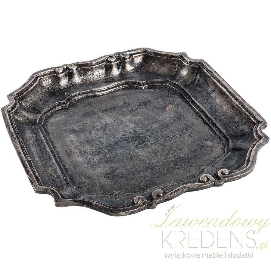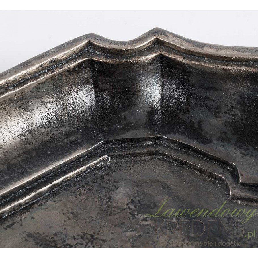 Niezwykła, przyciemniana metalowa taca firmy Belldeco o cudownym, finezyjnym kształcie i ślicznych zdobieniach!