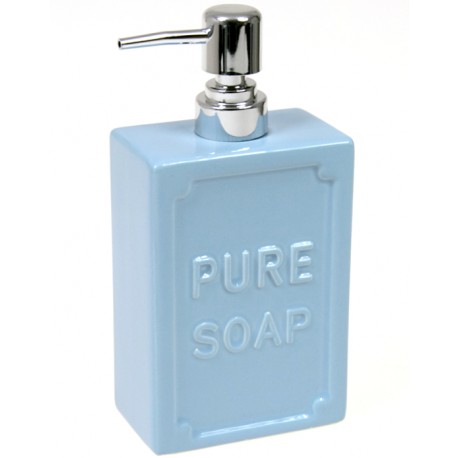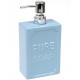 Błękitny dozownik do mydła w płynie z błyszczącą, metalową końcówką, dzięki której dostaniesz tyle mydła ile potrzebujesz!