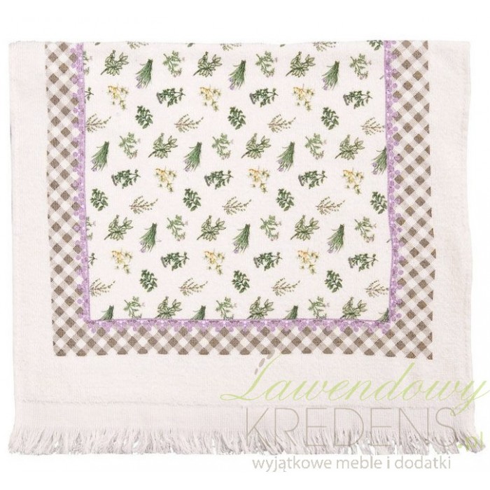 Nie tylko dekoracyjne ręczniki kuchenne to genialne dodatki prowansalskie, których w kuchni nigdy za wiele. Ręcznik z ziołami opleciony ramką w brązowo-beżową kratę, zakończony z dwóch stron frędzlami to wybór idealny do Twojego wnętrza. Ciesz się z gotowania, nie martwiąc się o mokre powierzchnie i ręce!