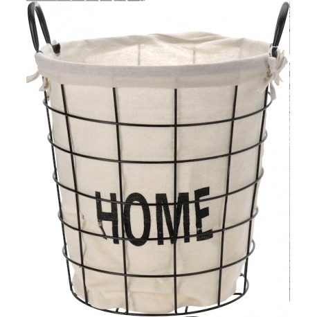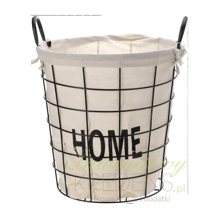 Metalowy kosz o prostej formie, lekko zwężanej ku dołowi, z dużymi, wygodnymi uchwytami. Środek kosza to bawełniany, jasny worek przywiązany sznurkami do górnej poręczy, który można w każdej chwili wyciągnąć. Na worku nadrukowany jest napis Home. Rewelacyjny dodatek do łazienki nie tylko w stylu prowansalskim!