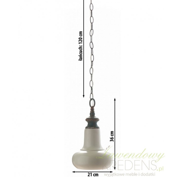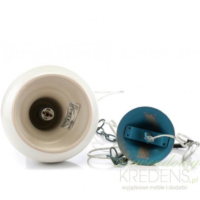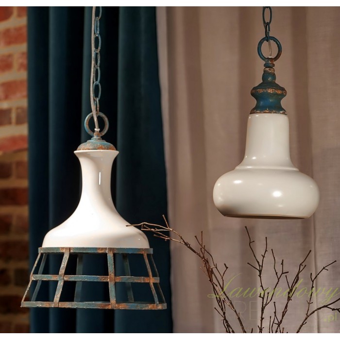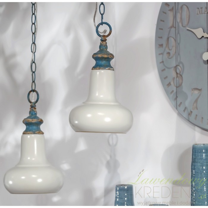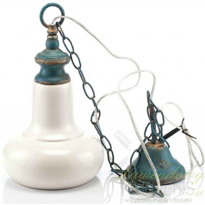 Niezwykle klimatyczna lampa aluro wykonana jest z porcelany i metalowego łańcucha. Łańcuch i gwint lampy jest przetarty i pomalowany na kolor niebieski, co dodaje jej uroku i subtelności. Lampa w stylu prowansalskim to niespotykany styl i niepowtarzalny wygląd. Zapraszamy do obejrzenia wszystkich lamp aluro!