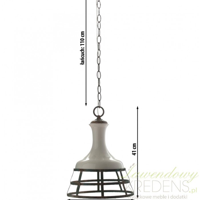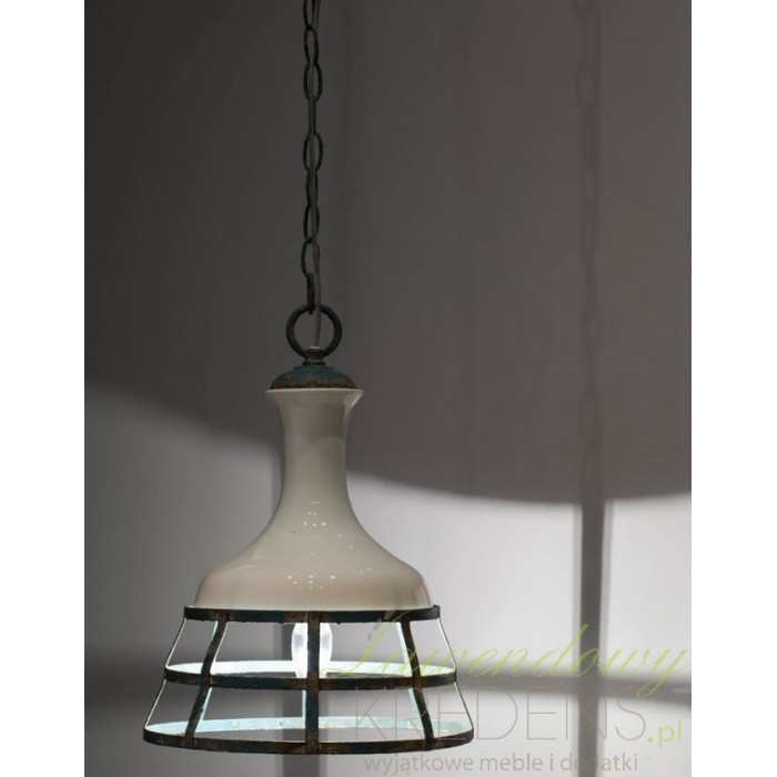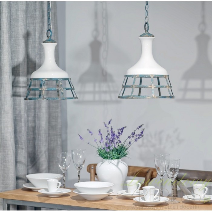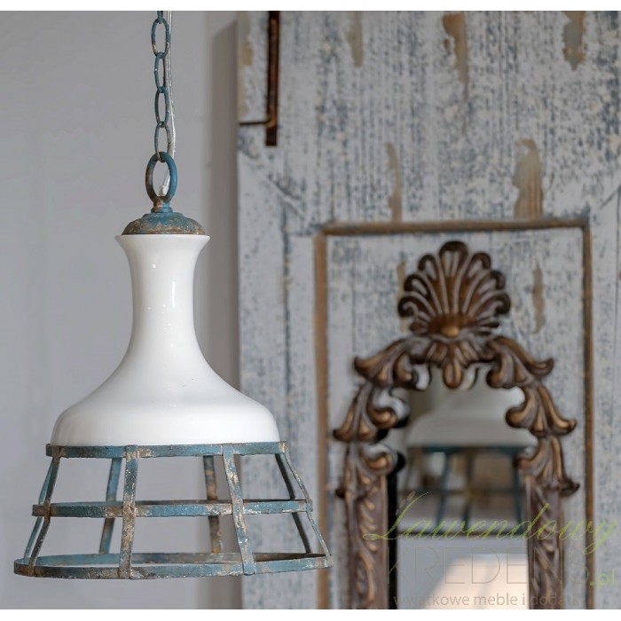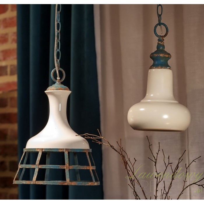 Niesamowita lampa w stylu prowansalskim wykonana jest z porcelanowego i metalowego klosza z końcówką w kratę. Lampa aluro zawieszona jest na długim łańcuchu, dzięki czemu stół lub inny mebel jest dobrze oświetlony. Postarzane metalowe części lampy i kolor niebieski nadają jej specyficzny charakter i styl dawnych czasów. Zapraszamy do obejrzenia wszystkich produktów firmy Aluro.