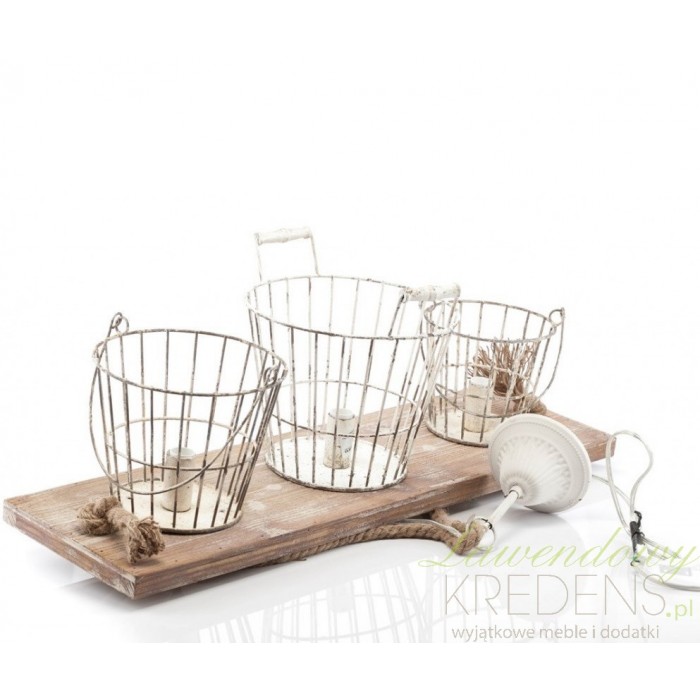Niesamowita i niepowtarzalna lampa rustykalna marki Aluro, której klosze są metalowymi koszykami. Fantastyczny klimat!