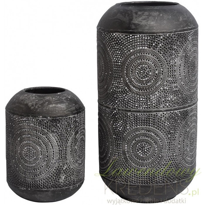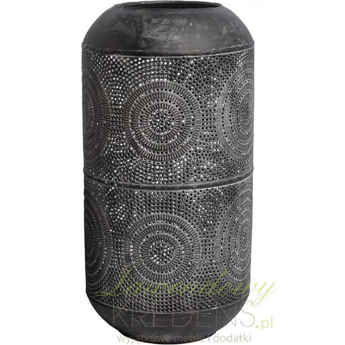 Czarny lampion firmy Belldeco wykonany jest z metalu i szkła. Sprawia wrażenie ubrudzonego białą kredą, co nadaje mu niesamowitego i niebanalnego wyglądu. Lampion Belldeco ma oryginalny wzór kół i jest w kształcie walca. Stanowi przepiękną dekorację pokoju, która w intymnych chwilach nada romantyczny nastrój i przytulny klimat.