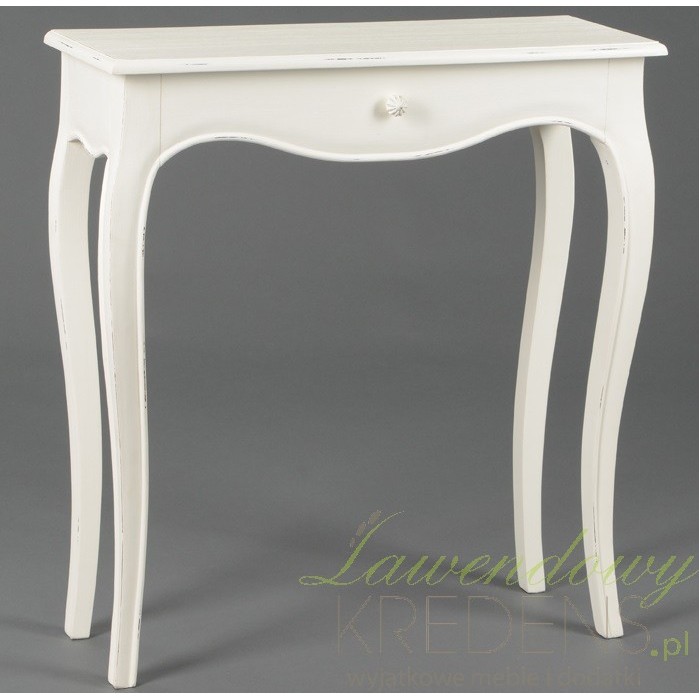 Bardzo kształtna konsola prowansalska w neutralnym kolorze kremowym, z delikatnymi przetarciami na krawędziach!