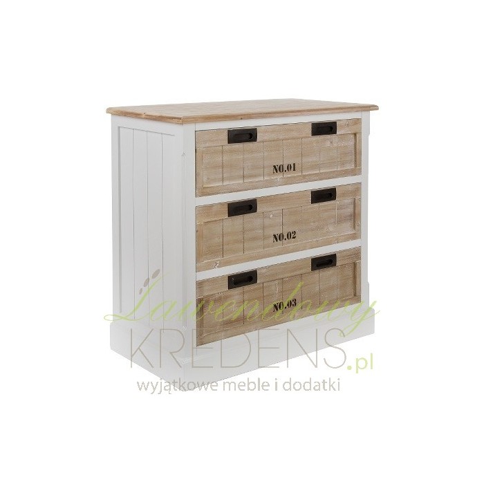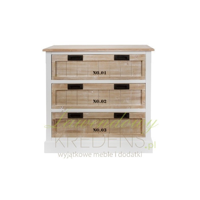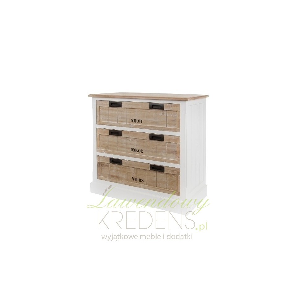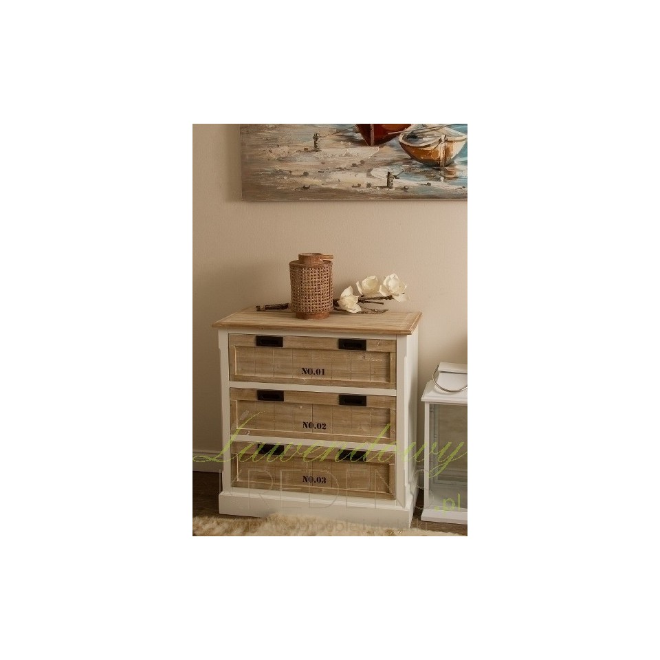 Bardzo nowoczesna komoda prowansalska z trzema szufladami, otwieranymi za pomoca specjalnych wycięć we frontach!