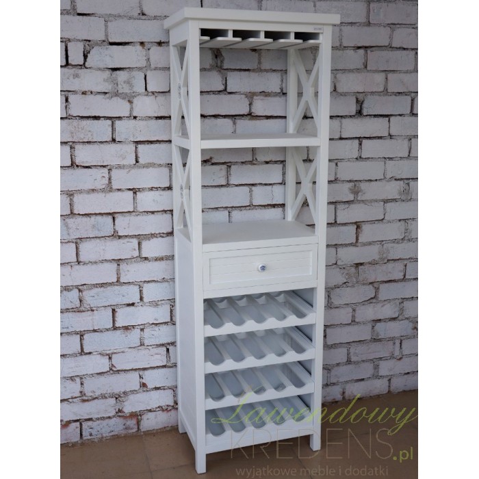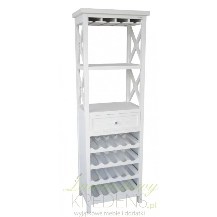 Białe meble to wspaniała, uniwersalna ozdoba mieszkania. Mebel na wino spełnia ważną rolę w domu smakosza win. Regał na wino pochodzenia niemieckiego to przepiękny drewniany regał stworzony w oryginalnym i niebanalnym stylu. Posiada cztery półeczki na wina, szufladkę oraz dwie duże półki. Polecamy!