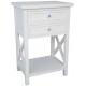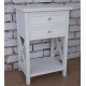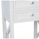 Biała szafka Marina z elementami w stylu marynistycznym to ładnie wykonany mebel z dwoma szufladami i blatem.