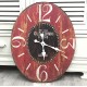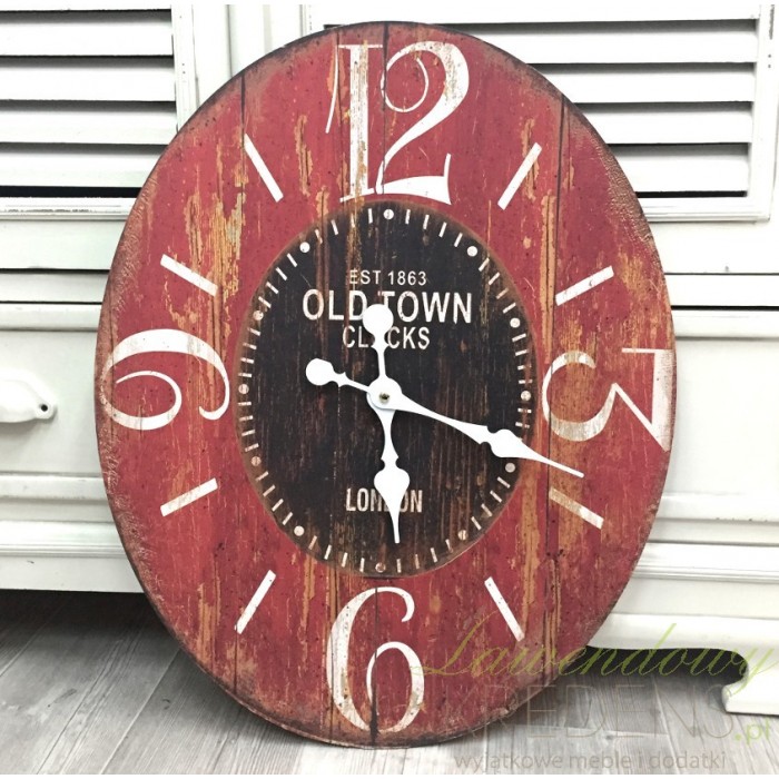 Czerwono-czarny zegar w stylu retro przyciąga wzrok dzięki pięknemu wykonaniu na desce, poddanej zabiegom postarzającym oraz niebanalnej kolorystyce. Duża czcionka liczb i cyfr pomaga w łatwy sposób odczytać godzinę a pięknie wycięte wskazówki wyglądają po prostu cudownie! Ożyw sowje mieszkanie - niech retro zegar odmierza Ci czas!