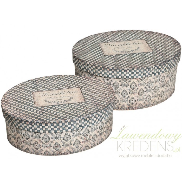 Owalne pudełko ozdobne Belldeco wykonano z grubej tektury oraz wyposażono w wygodną przykrywkę. Na bokach produktu umieszczono cudownie prezentujący się ornament o miękkiej, falistej linii. Na pokrywce zaś, widnieje zgrabne kratkowanie oraz naklejka z pięknie wyglądającym napisem. Dodatki w stylu prowansalskim - praktyczne i urocze! Cena za 1szt.