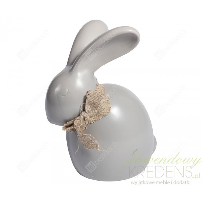 Zając ozdoba będący przedstawicielem znanej marki Belldeco to urocza figurka, o delikatnej linii. Produkt wykonano z ceramiki nadając jej ładną, delikatną, szarą barwę. Szyję zajączka przepasano brązową wstążką, która uroczo komponuje się z figurką. Wybierz Belldeco! Wybierz prowanslaskie dekoracje!