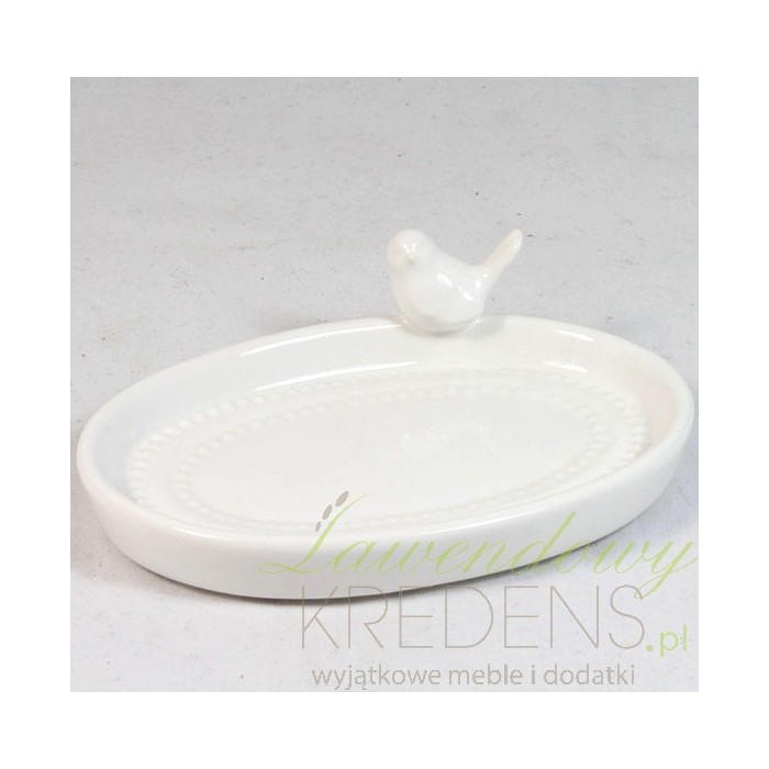 Elegancko wyglądające detale upiększają każde wnętrze stanowiąc wykończenie całości wystroju, dlatego zwróć uwagę na pięknie ukształtowaną mydelniczkę z ptaszkiem. Produkt wykonano z białej ceramiki. Świetnie sprawdza się jako dozownik do mydła, z racji na swój kształt. Mały ptaszek umieszczony na krawędzi naczynia wygląda cudnie. Mydelniczka w stylu prowansalskim - piękna!