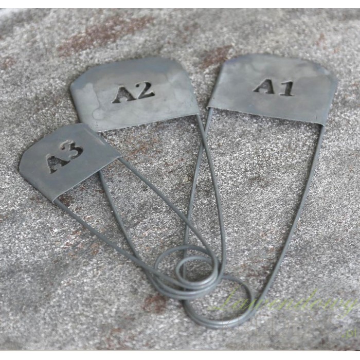 Wyjątkowe dekoracje w stylu prowansalskim pozwolą na udekorowanie mieszkania w sposób niesztampowy a zarazem uroczy. Trzy agrafki ozdobne to drobiazgi wykonane w różnych rozmiarach. Produkty stworzono z metalu i opatrzono napisami w postaci wycięć cyfr i liter. Agrafki mają kolor szary i reprezentują styl chic antique.
