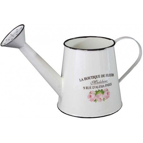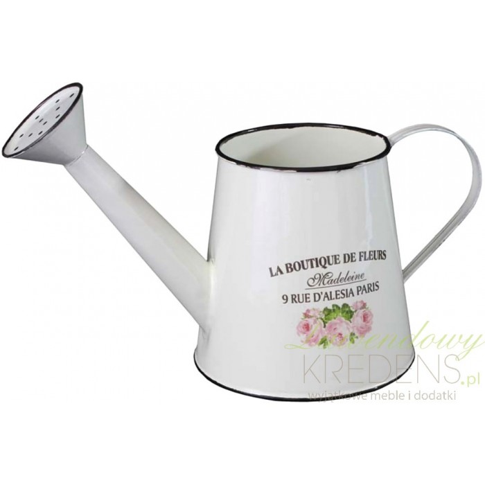 Konewka w stylu francuskim wykonana jest z wysokiej klasy metalu w białym kolorze. Ma okrągły kształt i dekoracyjne francuskie napisy wraz z ozdobnymi różyczkami. Dodatki w stylu francuskim to wspaniała dekoracja i ozdoba twojego ogrodu bądź też domu.