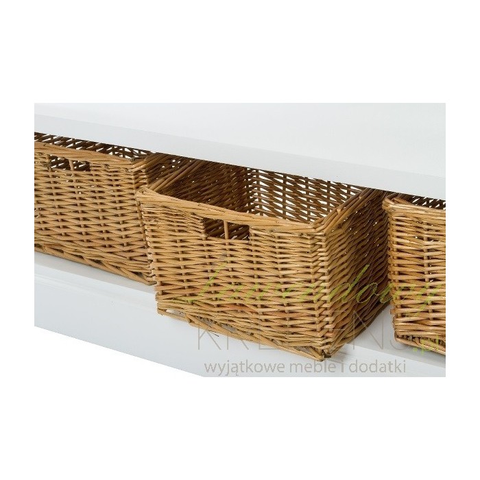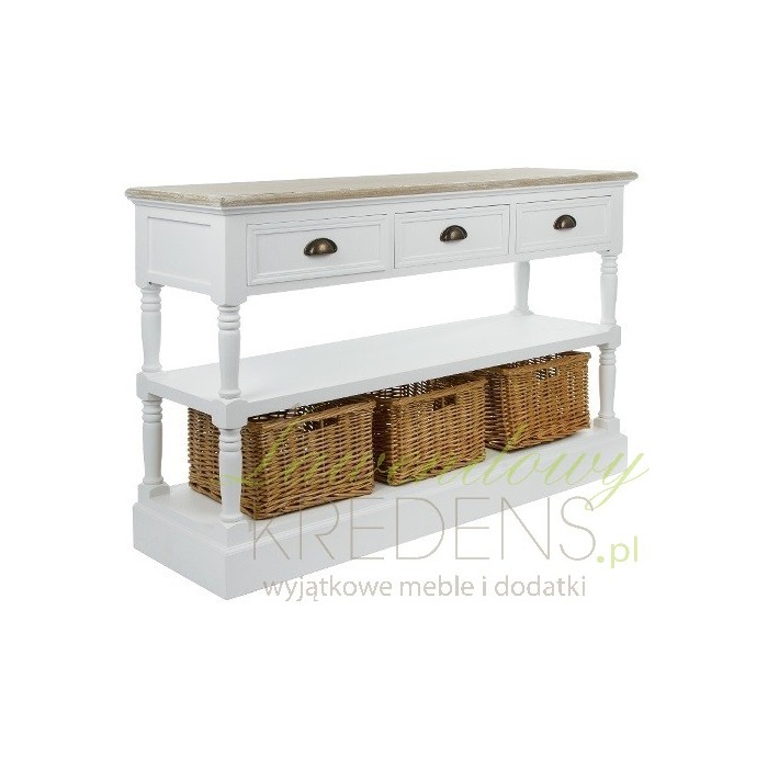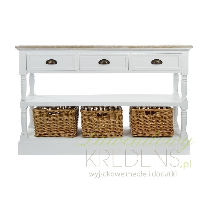 Niestandardowa konsola prowansalska ozdobiona efektownymi koszykami, które stanowić mogą samodzielny element wystroju!