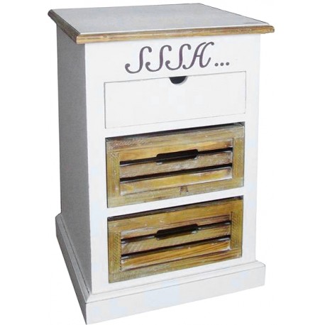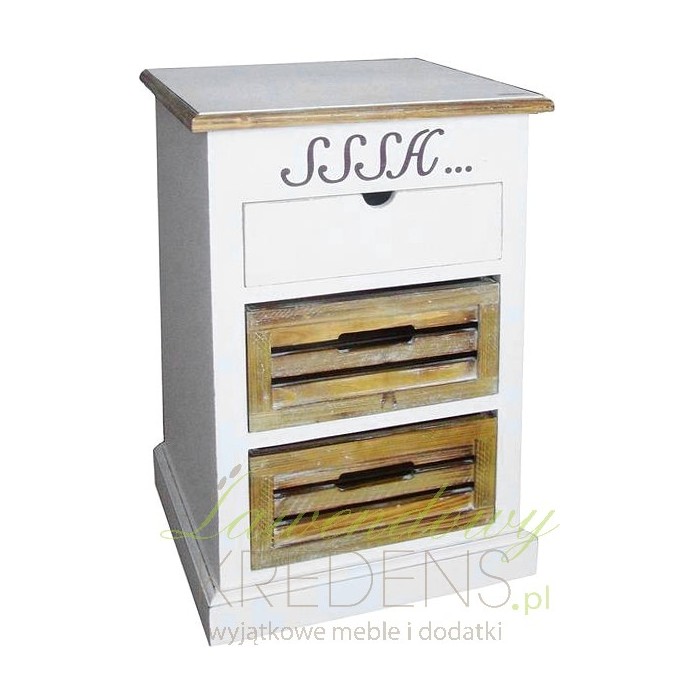 Wyjątkowa szafka nocna z aż trzema szufladami, z których dwie do złudzenia przypominają drewniane skrzyneczki!
