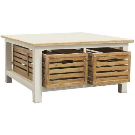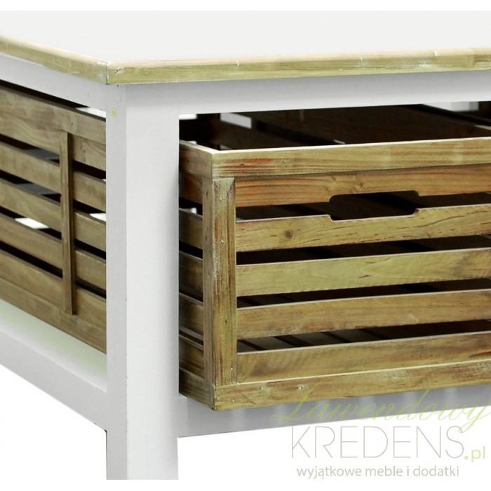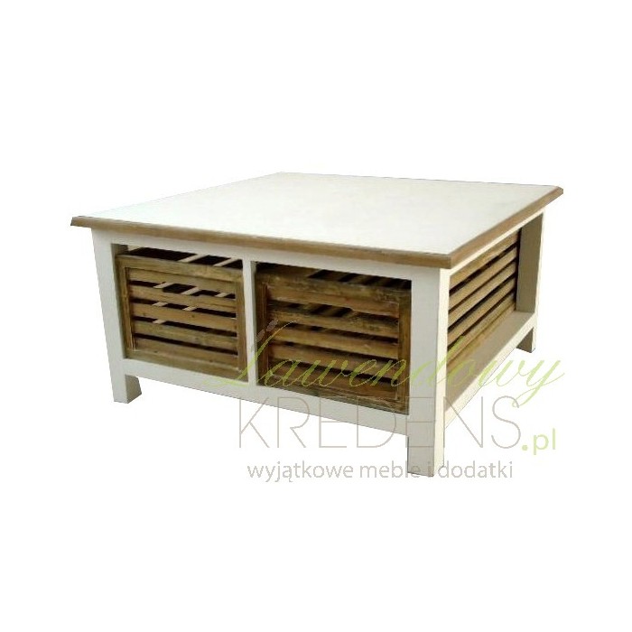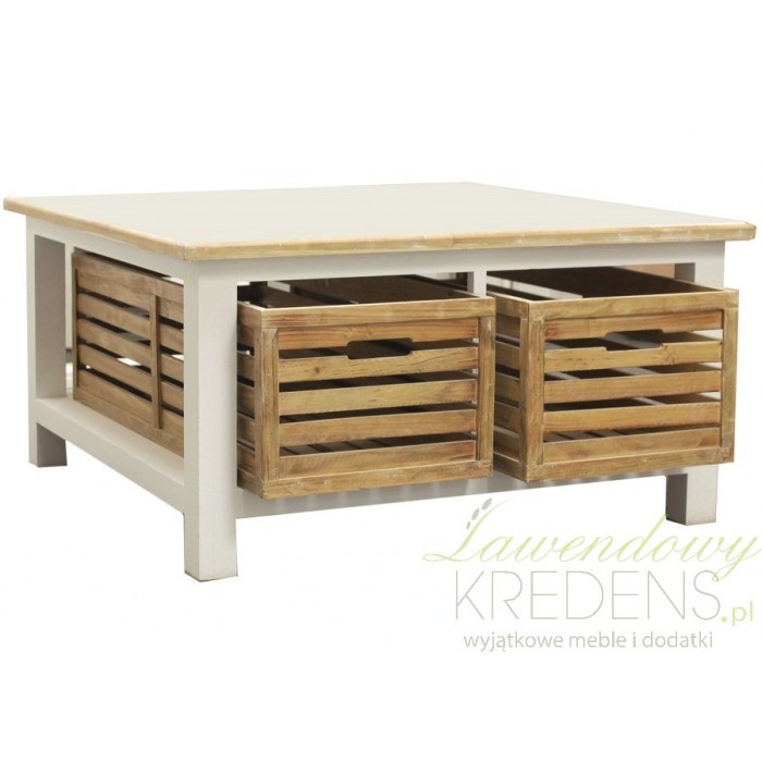 Oryginalny to mało powiedziane! Stolik kawowy w stylu prowansalskim z fantastycznymi skrzynkami to strzał w dziesiątkę!