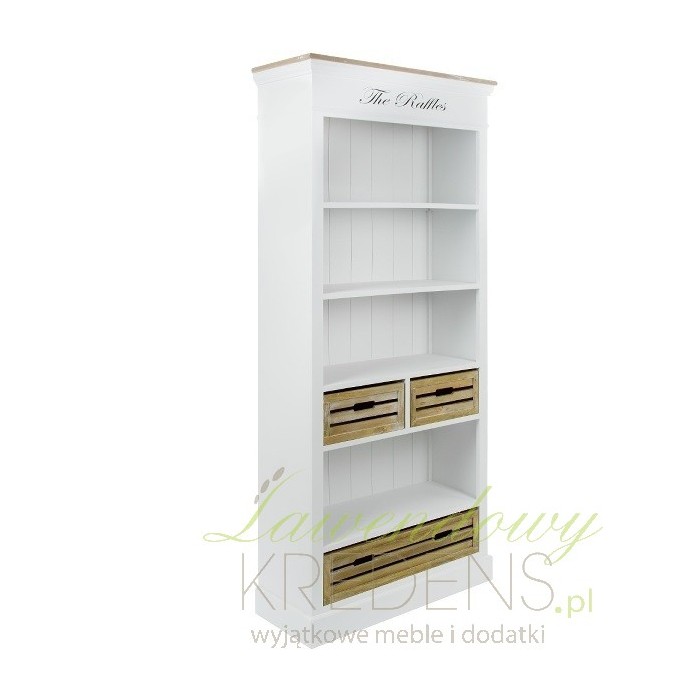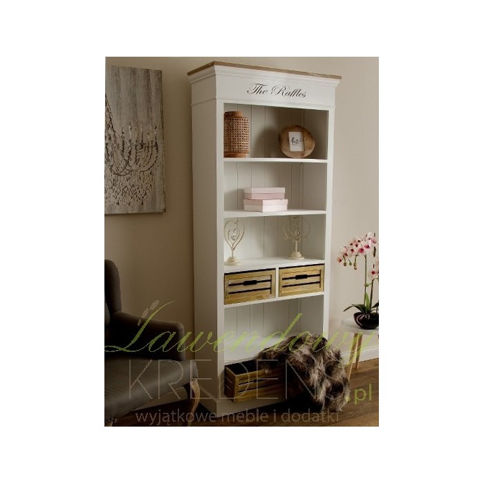 Regał prowansalski to mebel w białym kolorze, któy wyposażono w niesztampowe pudełka z drewna zastępujące klasyczne szuflady. Regał posiada pojemne półki, na których możesz postawić np. talerze czy ozdoby. W górnej części mebla znajduje się ozdoba w ostaci napisu. Meble prowansalskie - zachęcamy do oglądania!