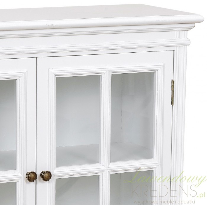 Prowansalska komod przeszklona z wydzielonymi dwiema, szerokimi półkami. Zachwycająca forma!